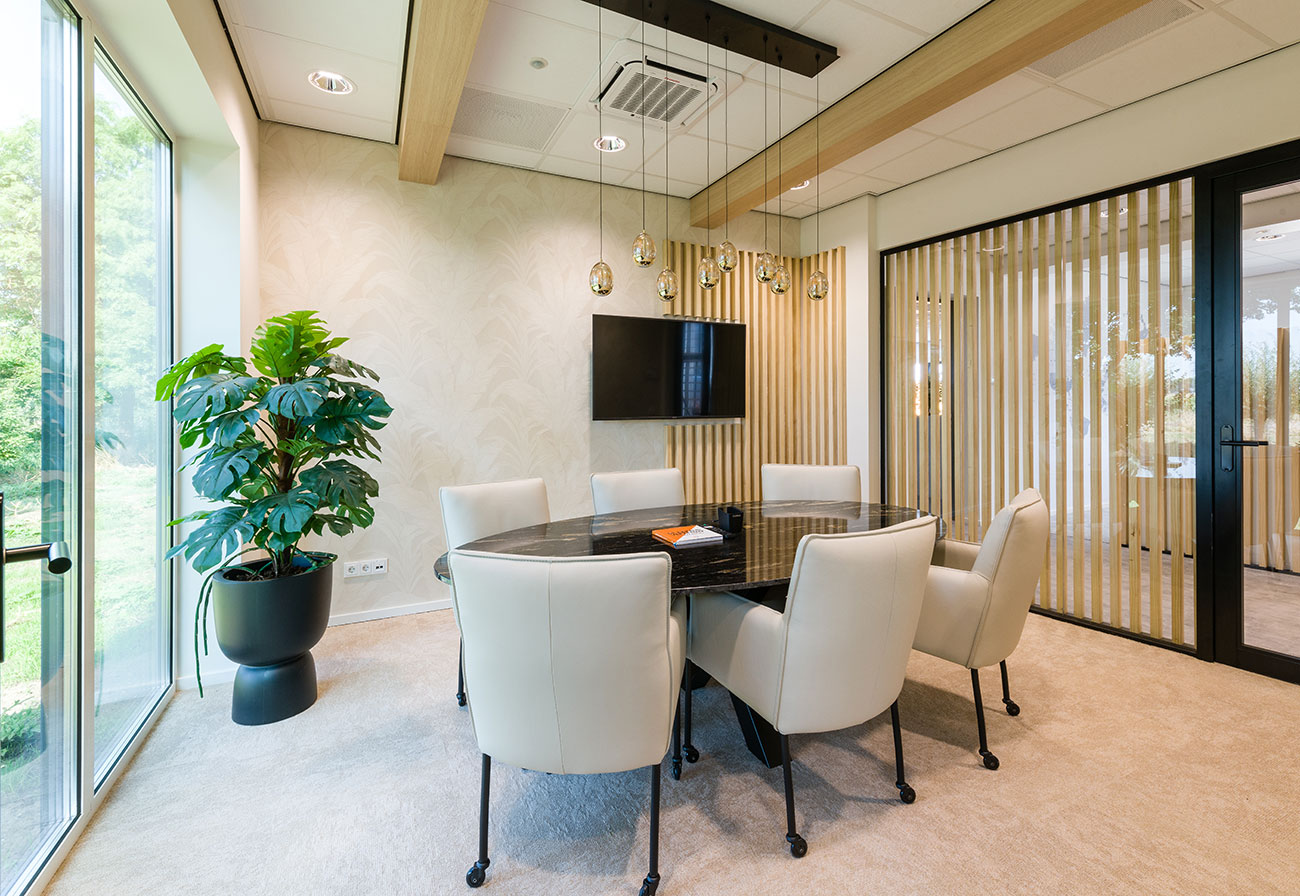 Twee bestaande bedrijfsruimtes moesten worden verbonden. Hiervoor is een aansprekend en uitnodigend nieuwe kantoor en ontvangstruimte tussen de twee bedrijfsgebouwen gerealiseerd.